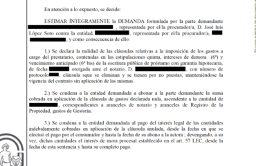 El Juzgado, estimando íntegramente la demanda condenando a la Entidad Bancaria a devolver a los clientes la cantidad abonada indebidamente.