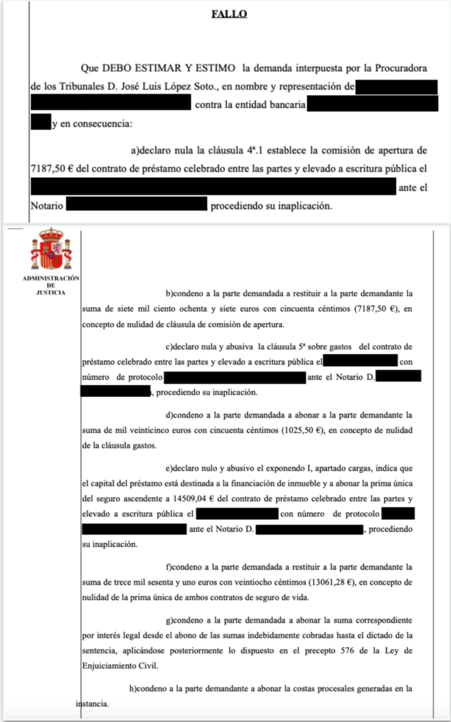 El Juzgado, estimando íntegramente la demanda condenando a la Entidad Bancaria a devolver a los clientes la cantidad abonada indebidamente.